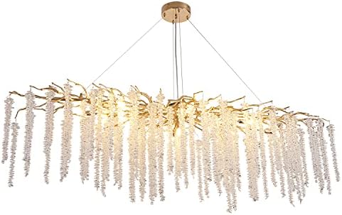 Amazon Com Akeelighting Gold Crystal Chandelier Modern Tree Branch Chandeliers L63 Linear Icicles Hanging Foyer Dining Room Long Large Raindrop High Ceiling Rectangular Chandelier Light Fixture Everything Else
